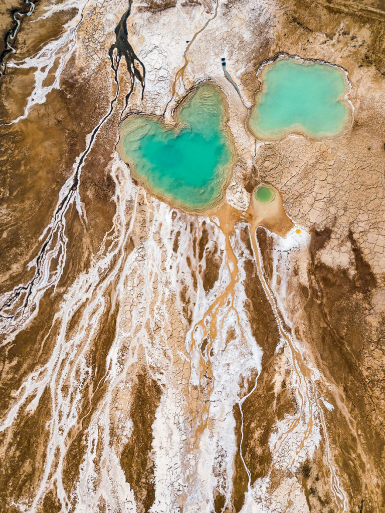 Mivel a tenger vízszintje folyamatosan csökken, a föld üregessé válik, így elég veszélyes sétálni a környéken, mert a talaj könnyen beomlik. Tzvika Stein ugyanakkor egy vérbeli tájfotózó, s mellesleg egy igazi kalandor, így egy darabig DSLR kamerájával fürkészte a környéket, de egy idő után elkezdte használni a DJI Mavic Pro típusú drónt, hogy az olyan vidékekről is felvételt készíthessen, ahova már nagyon necces lett volna gyalog ellátogatni. A képanyagot látva pedig még ő is meglepődött: a Holt-tenger ugyanis valami egészen csodásan fest fentről.