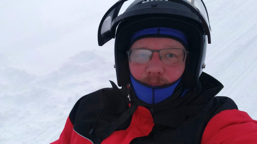 Szóval felöltözöl, vidáman lefotózkodsz a társasággal (a túravezető sem ma kezdte, pontosan tudja, hogy a túra előtt kell ezt csinálni, hogy biztosan mosolygós arcok kerüljenek instára, fészre) és meghallgatod a gyorstalpalót. Ez a billentyű a gáz, azt a madzagot csíptesd a ruhádra, hogy ha leesel, ne száguldjon el nélküled a havas pusztába a gép (mi??), az a kar a fék, de az úgyse kell, mert ha kellene, már régen rossz, ha meg akarsz állni, elég elengedni a gázt (mivaaan?).