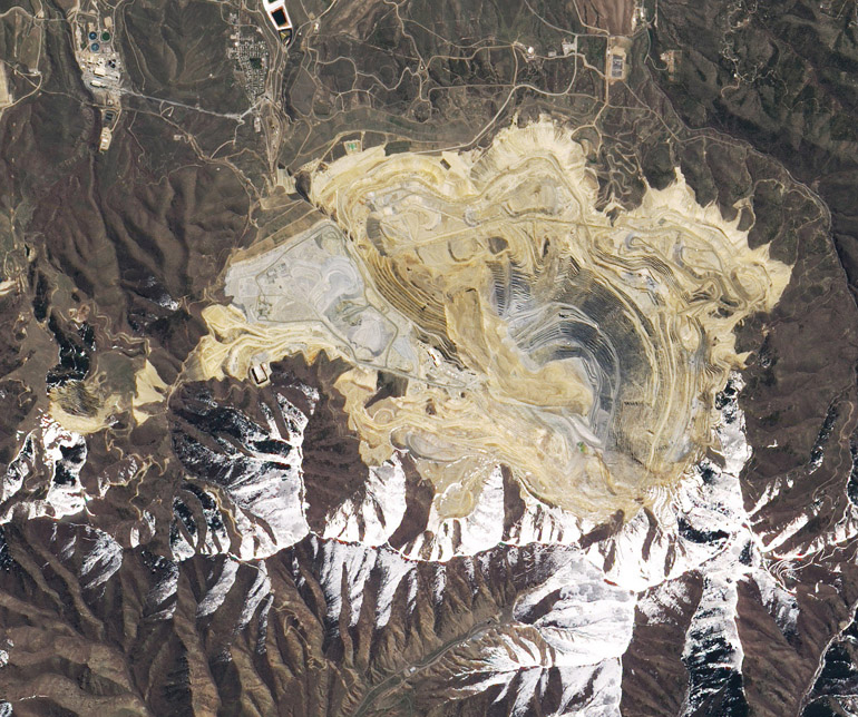 A Bingham-kanyon bánya a világ egyik leghatalmasabb rézbányája, amely majdnem öt kilométer széles és 1200 méter mély. A kép május elején készült, kevéssel Amerika történetének legnagyobb földcsuszamlása után.