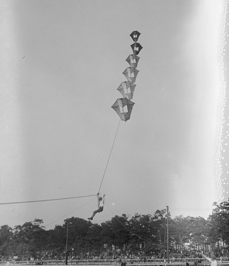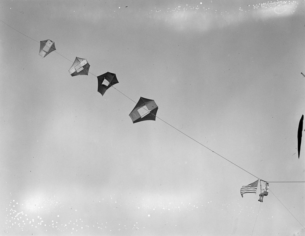 A bostoni Samuel F. Perkins a hadseregnek igyekezett kifejleszteni egy olyan sárkányokból álló rendszert, amely képes volt egy felnőtt férfi súlyát a levegőbe emelni.
