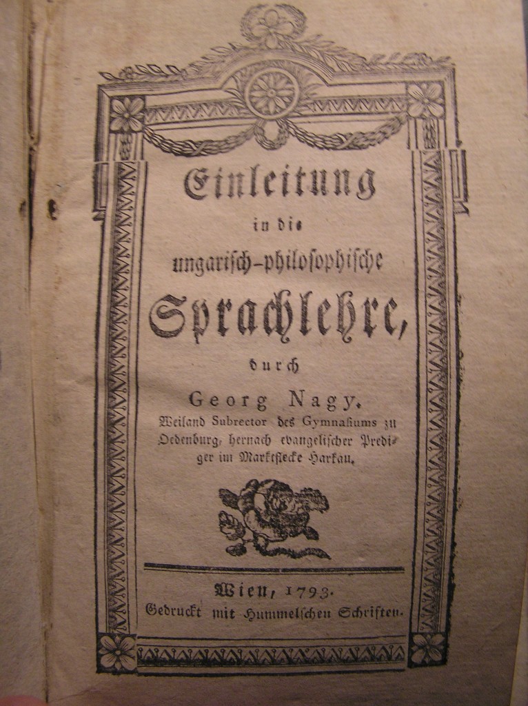 A bemutatni kívánt kötetet Nagy György (Georg Nagy) írta, s 1793-ban jelent meg Bécsben, a göttingeni Alsó-szászországi Állami Egyetemi Könyvtár kiadójától, a Hummeltől.