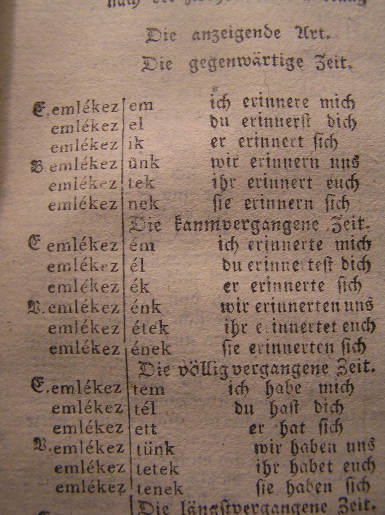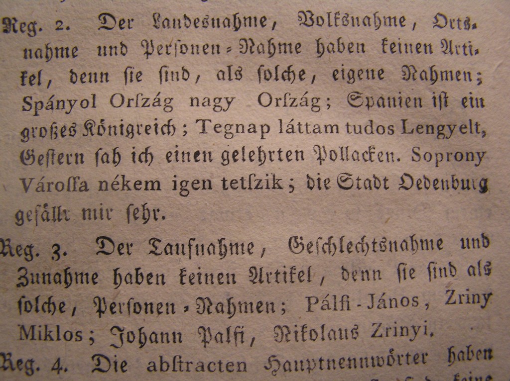 A könyv második felében már megjelenik a folyó szöveg is, eleinte rövidebbek, majd hosszabbak is, mellettük a német megfelelője is: