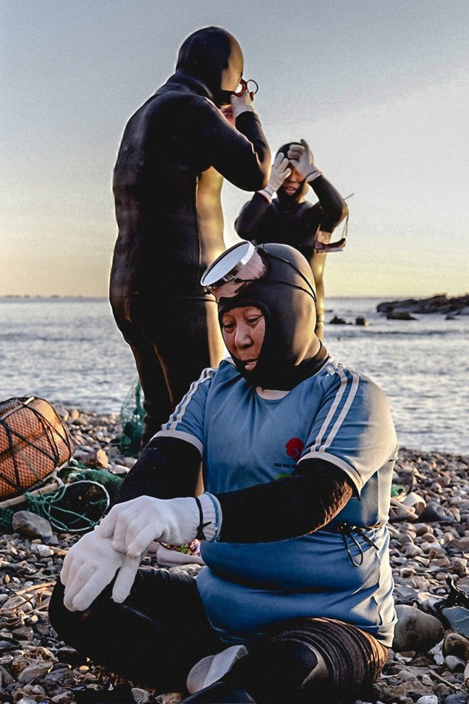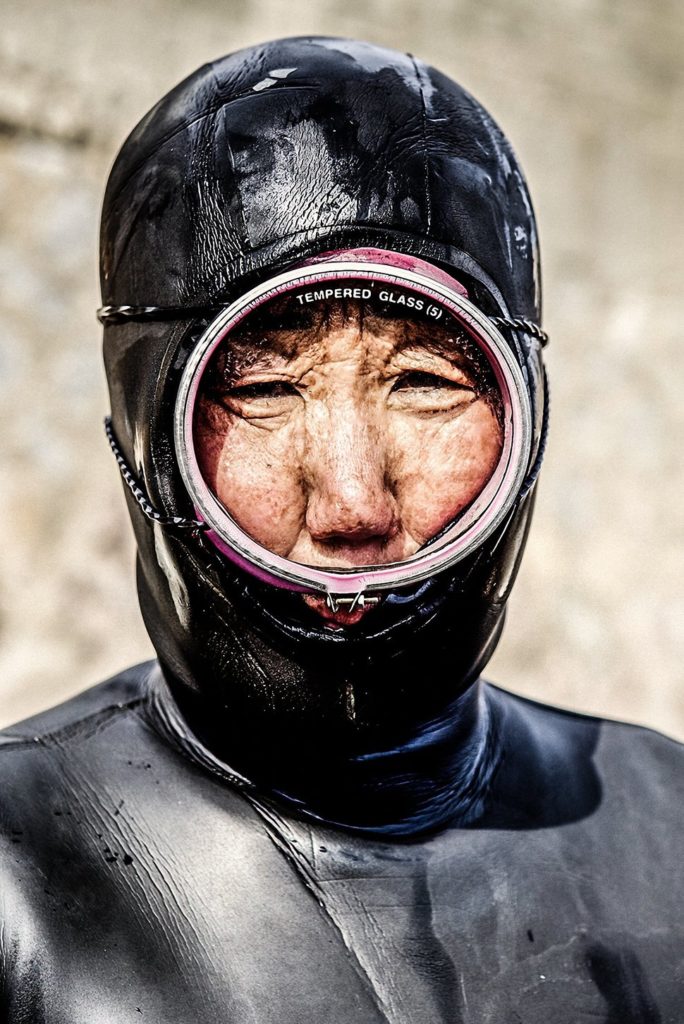 Egy több évszázados mesterség, a Haenyo utolsó női képviselőiről készített megkapóan erős fotósorozatot a New Yorkban élő Mijoo Kim. Igazából inkább habnéniknek kéne hívnunk őket, minthogy hetven éves átlagéletkorról beszélünk. A mélytengeri, szabadtüdős merüléssel halászás mestersége az ötödik század környékére datálható. Akkor még férfiak merültek mélyre a szinte fagyos vízben, hogy osztrigát, tengeri uborkát, kagylóféléket, tengeri sünöket és tintahalat fogjanak. Azonban az idő múlásával egyre több nő vette át ezt a feladatot, így már a 18. századtól ezek a bátor és erős nők lettek a kenyérkereső hableányok, a Haenyo-k, akik mindenfajta felszerelés nélkül merültek kb. 20 méter mélyre a tengerben a betevő falatért.