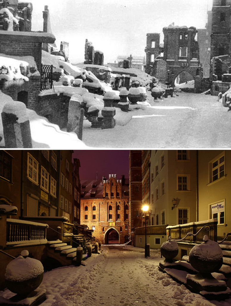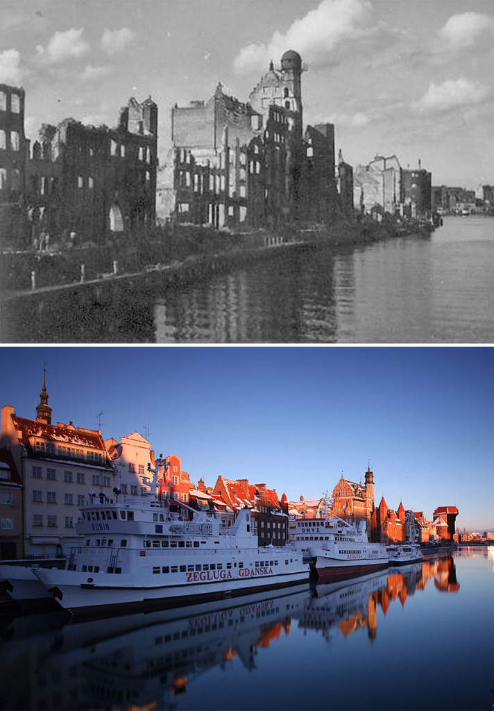 Gdańskkal, Lengyelország hatodik legnagyobb városával nem bánt kegyesen a második világháború: a szovjetek a város több, mint nyolcvan százalékát elpusztították, miután a németek feladták. A történelmi városnak viszont sikerült hamvaiból újjáélednie, melyet ezeken a látványos előtte-utána képeken csodálhatunk.