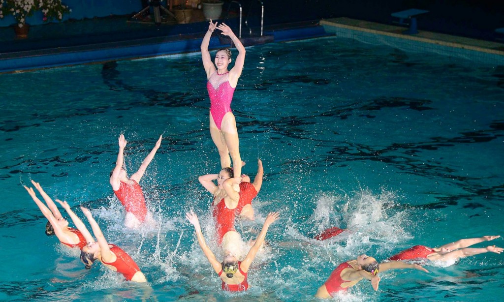 Később volt egy kis szinkronúszás bemutató is, csak hogy ezen a napon is lásson a jóságos pártvezetés egy kis szabad női bőrfelületet.