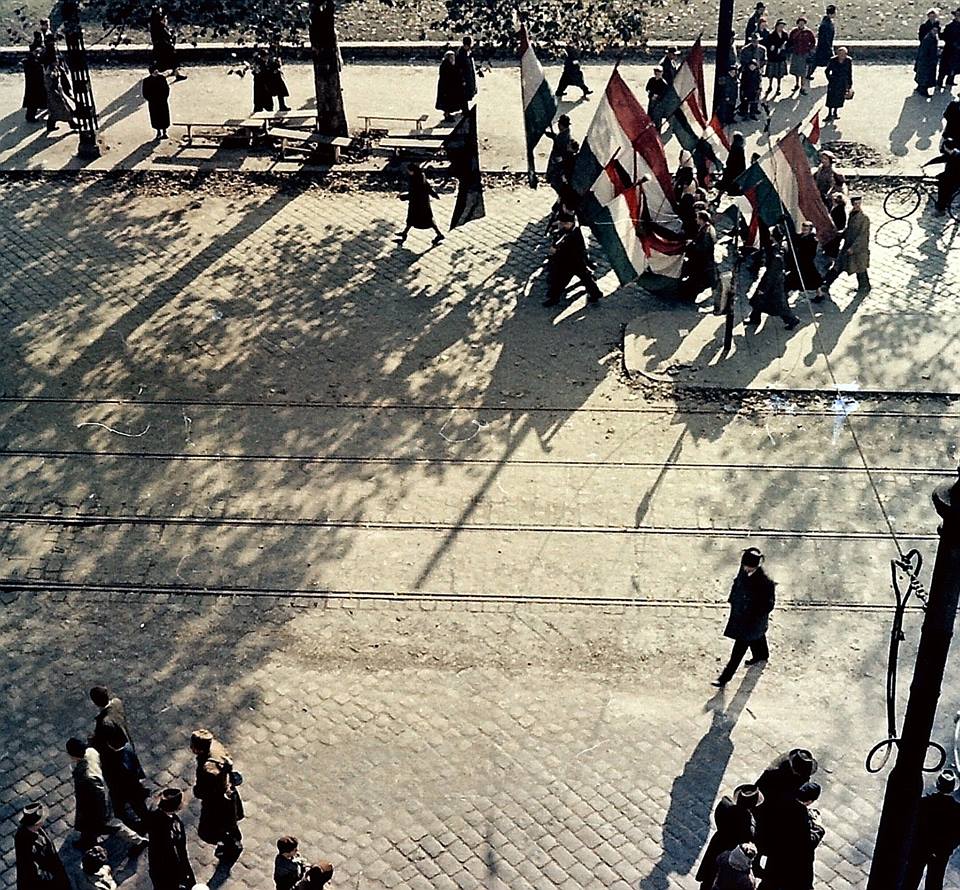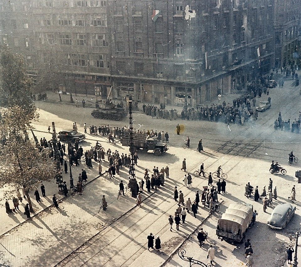 Van valami megmagyarázhatatlan közvetlenség, pillanatban levés ezekben a fényképekben, a közhelyes megfogalmazással élve valósággal megelevenedik a múlt, és szinte várjuk, hogy megmozduljon a kép, folytatódjon ötvenhat, elinduljanak a zászlókat hordó emberek, a járőröző fegyveresek, a teherautók, dübörögjön a tank, folytatódjon az utcán álló, hóna alatt kenyeret szorongató asszony és fejkendős barátnője beszélgetése. Ez az élő ötvenhat.