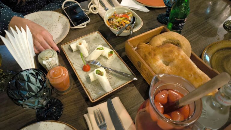 Mi most csak ilyen fancy helyeken ettünk. Nem volt rossz vagy a magyar ízlésnek elfogadhatatlan semmi – nem láttunk se birkaszemet, se kumiszt, semmi ilyesmit. Mindenhol jóllaktunk, a megosztozós jellegűen tálalt cuccok között mindenki megtalálta a maga kedvencét.