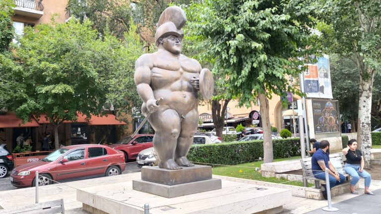 A két legszélsőségesebben érdekes építészeti jellegű dolog, amit láttunk, az a IV. századtól felülről lefelé mélyíteni-építeni kezdett Geghard monostor sziklatemploma, és a mozgólépcsős-vízeséses múlt századi Cascade-komplex, ami egy szabadon látogatható kortárs képzőművészeti magángyűjtemény is egyben. Az építmény lábainál fekvő cuki kis szoborparkban két csodálatos pucér Botero-alkotás is látható, de a kínai Yue Minjun röhögő figurája és a dél-koreai Ji Yong-Ho gumioroszlánja se rossz!