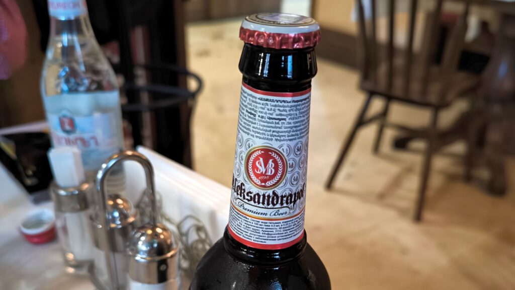 A borkultúrába épp csak belekóstoltunk; a 98,5%-ban keresztény, Noéra visszavezetett családfájú, fennsíkokból és hegyekből álló Örményországban nehéz hibázni, ha csak úgy egy valamilyen, akármilyen helyi bort kóstolna meg az ember. A sörkínálat sokkal kevésbé látványos. Van a minőséginek számító, éttermi kínálatban jellemző kis üveges Aleksandrapol, a még kisebb üvegben (is) kapható, közterületeken reklámozott Gyumri és néhány fantáziátlanabb, ízetlenebb tömegsör. A sörforradalom azért már eljutott Örményországig: a hotelünk bárjában elképesztően jó csapolt craft búzasörrel kísértük végig az angol-hollandot.