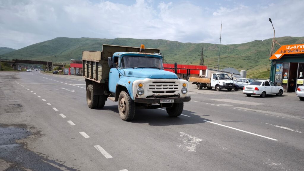 Az örmény utca- és tájkép alavető meghatározója a rettenetesen sok, többnyire kék-fehér ZIL teherautó. A mokány, kedvesen gömbölyded szovjet csoda billencs, nyergesvontató, daru és minden formában megtalálható az utakon. A legtöbb példány gyönyörű, gurgulázó benzines motorhangja ne tévesszen meg senkit: a hatliteres V8-asokat mind átalakították a kint nagyon olcsó, a 480-510 forint körül kapható benzinnel és gázolajal szemben literenként alig 170-180 forintba kerülő LPG-re.