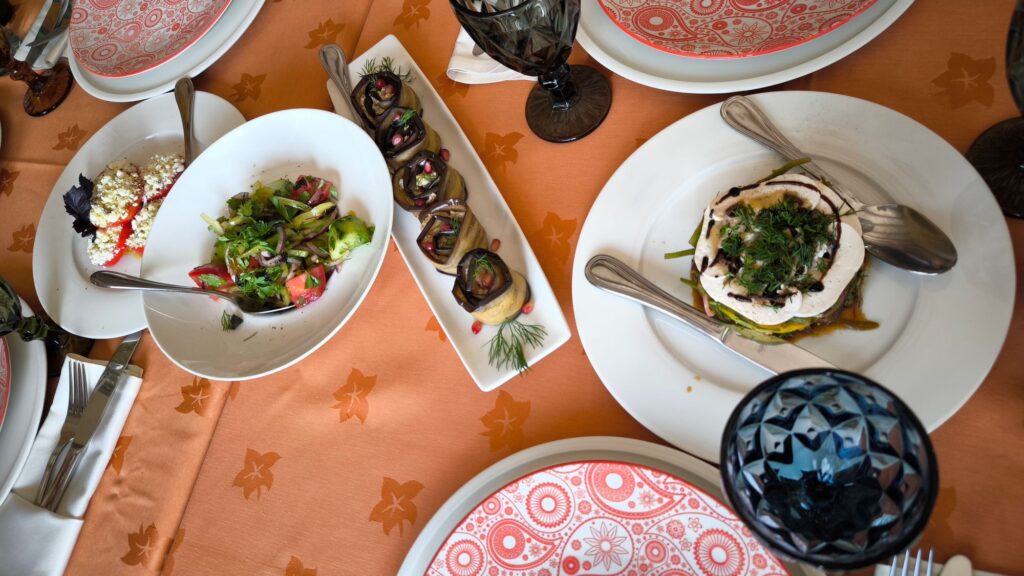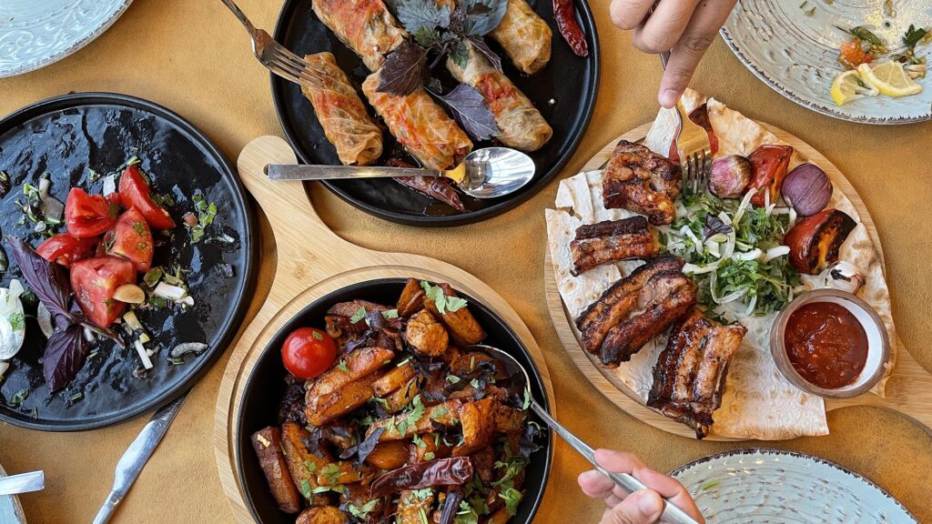 Ha drága étterembe mész, nyáron, akkor salátákat fogsz enni, a lavash nevű tortillaszerű kenyeret mindenféle kencékkel, padlizsánból készült nagyon finom dolgokat, kellemes ízű darálthús-alapú cuccokat, mócsingos sült húsokat, fantáziátlanul elkésztett kecsegét, szőlőlevélbe töltött dolgokat és sok-sok bulgurt. Néha egy kis gombás dolgot esetleg. Desszertnek pedig vagy meglepő dolgokat kapsz, ahol semmi sem az, aminek gondolod, vagy száraz, jellegtelen süteményeket, amiket szíved szerint belemártogatnál a kompótba, hogy legyen valami íze. Készülj fel rá, hogy minden, ami nem édes, meg lesz hengergetve korianderben, és ne lepjen meg, ha gránátalma-repeszek lesznek az ételek mellett.