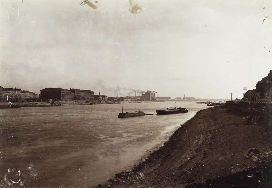 A Duna pesti rakpartja, az Elevátor házzal, a Közraktárakkal (a Fővámház építése előtti állapot). A felvétel 1890. után készült