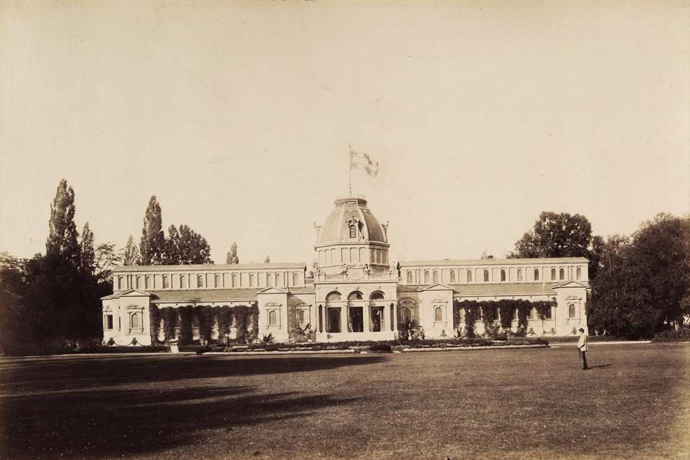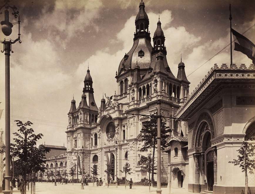 Millenniumi kiállítás: A Közlekedésügyi pavilon épülete (tervező: Pfaff Ferenc). A felvétel 1896-ban készült