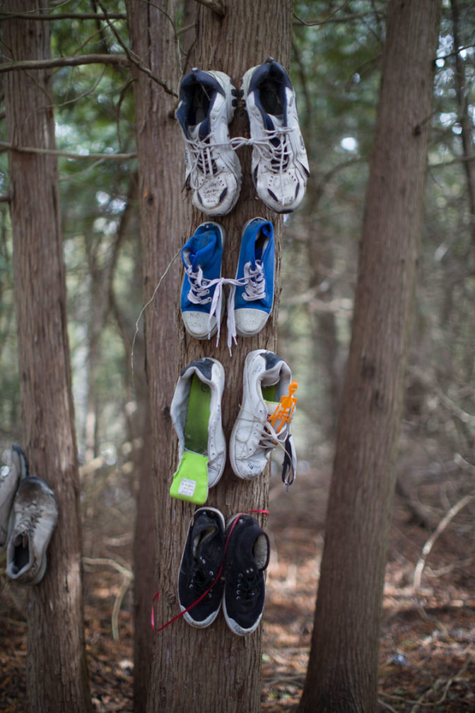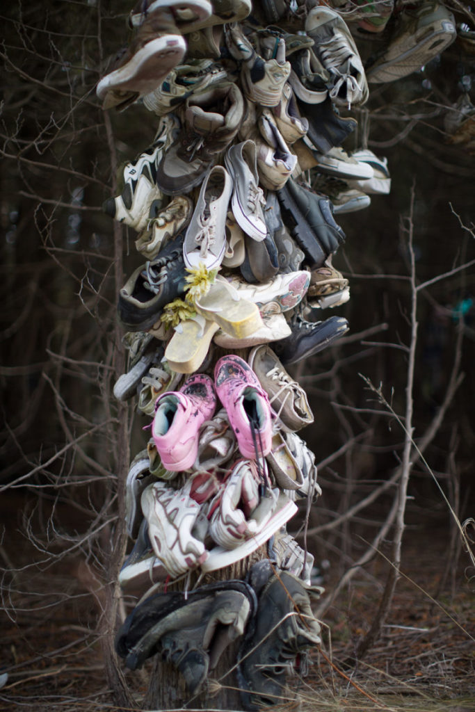 Patty Maher kanadai fotós épp Orangeville, Ontarionál autózott, mikor kiszúrta, hogy egy erdőben százával lógnak a cipők a fákon. Először azt gondolta, bizonyára valami baleset történhetett ott és emlékfalként alakult ki a cipőgyűjtemény – viszont mikor utánakérdezett a helyi rendőrségen, az ő nyilvántartásuk szerint nem történt annak az erdőnek a környékén semmilyen haláleset. A cipők 1972-ben kezdtek el feltűnni a fákon – azóta már több száz különböző méretű cipő lóg az erdőben, néhány pedig a földön hever.