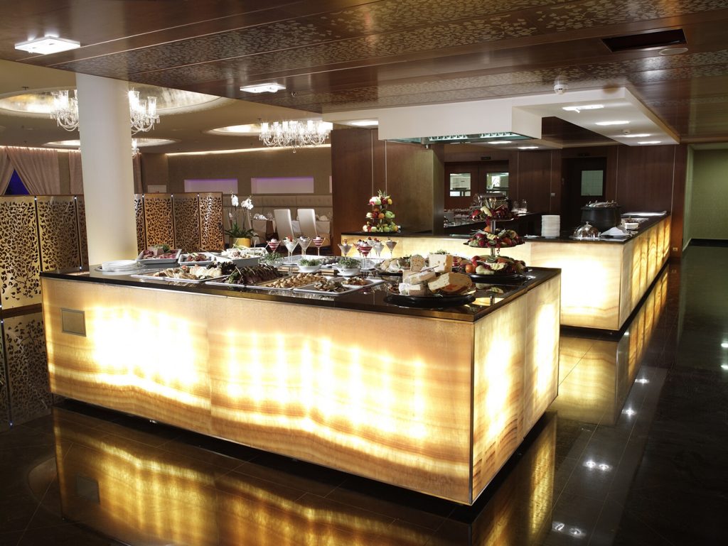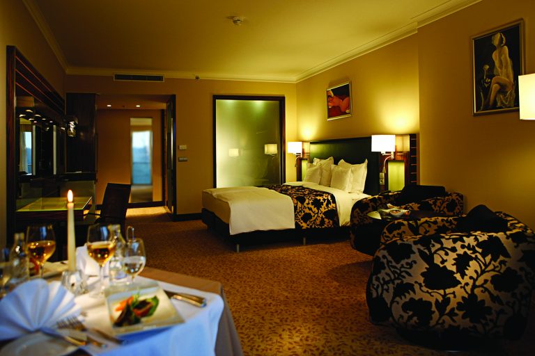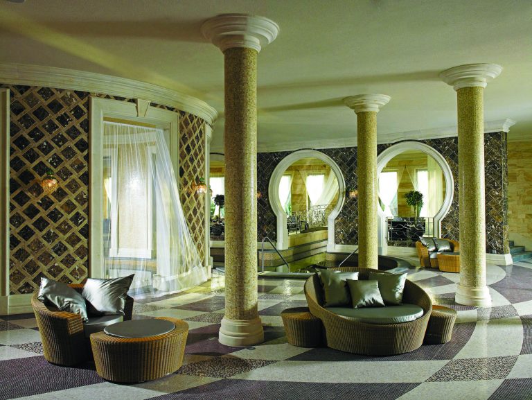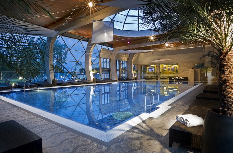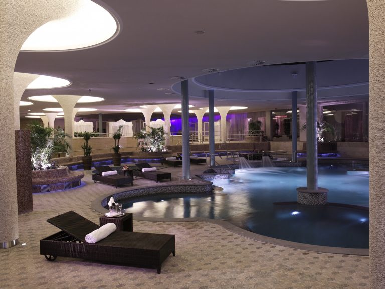 A hotel honlapját érdemes végignézni, tele van adatokkal, hogy mennyiféle termálvizes medencéje van, mennyi szaunája, gőzkabinja, jégkabinja, hidegvizes medencéje, hányféle kezelést, masszázst lehet kipróbálni, mekkora a konditerme, a spa részlege (10 ezer négyzetméter), hogy van squash, tenisz, négyféle bár, szóval ez a sok adat mind ott van az oldalon, de ami nincs ott, az a hangulat. Hogy annak ellenére, hogy telt ház volt, a vizes részlegben nem kellett nyomorogni, sőt, alkalmanként az ember egyedül maradhatott a kinti medencében a párjával, nézhette a vízből felszálló párát, az éjszakai égboltot, közben úgy olvadt a meleg vízben, mint vaj a serpenyőben.