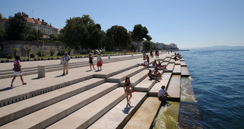 Nikola Bašić horvát építész úgy gondolta, a dél-szláv háborúban nagy károkat szenvedett Zadart feldobja egy kicsit: a tengerbe vezető márványmólókba sípként funkcionáló nyílásokat vágott, amelyekből a víz és a szél csal ki hangokat.