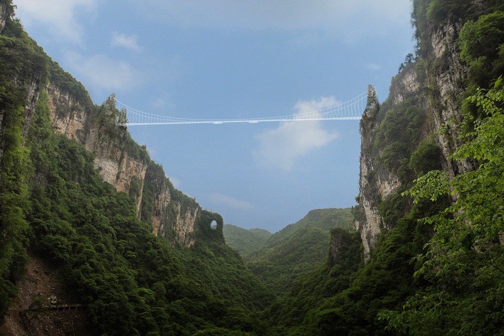 A Zhangjiajie Nemzeti Parkban található híd egyébként Hunan tartomány északi részén található, és várhatóan ezen a nyáron nyitják meg.