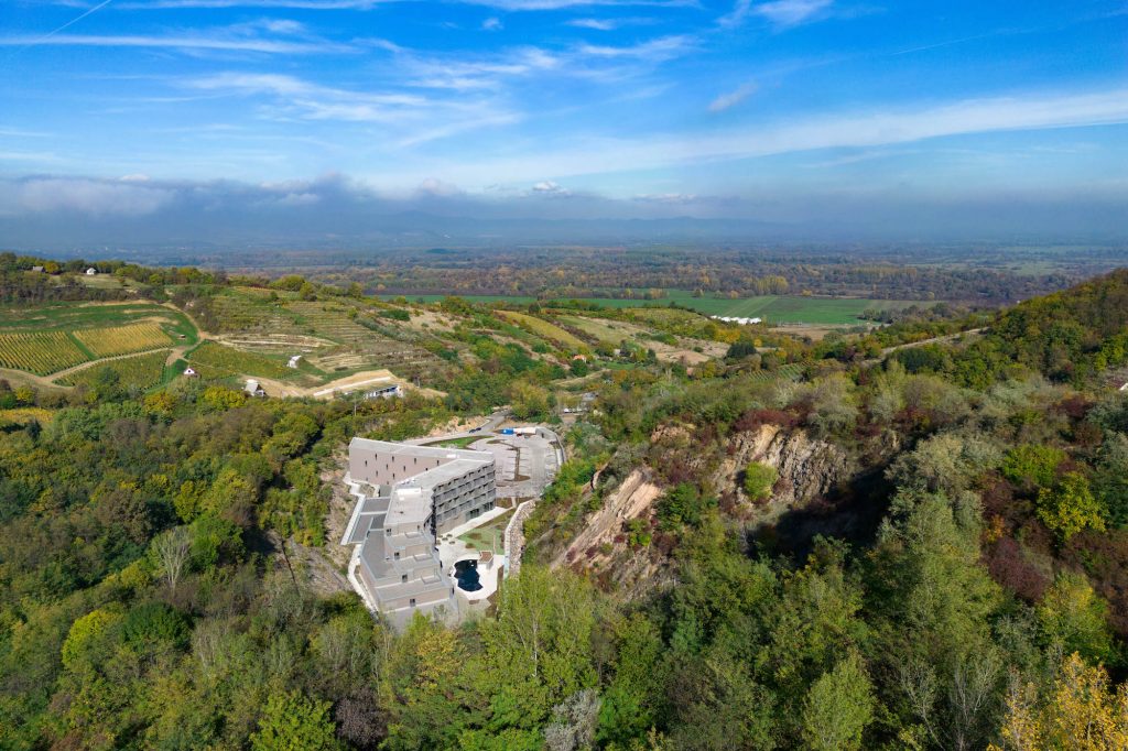 A koncepciótervet jegyző Singer Design minden funkció előképeit tanulmányozta, így tehát gyűjtött zárkózottságot és nyitottságot kifejező építészeti megoldásokat. A Tokaji-hegység egykori andezitkő bányájában felépített luxushotelhez nincs fogható száz kilométeres körzetben: aki ide ellátogat, ki sem kell mozdulnia napokig, és nem tud, és nem is igen akarhat másra koncentrálni, mint gondtalan a wellness-hedonizmusra.