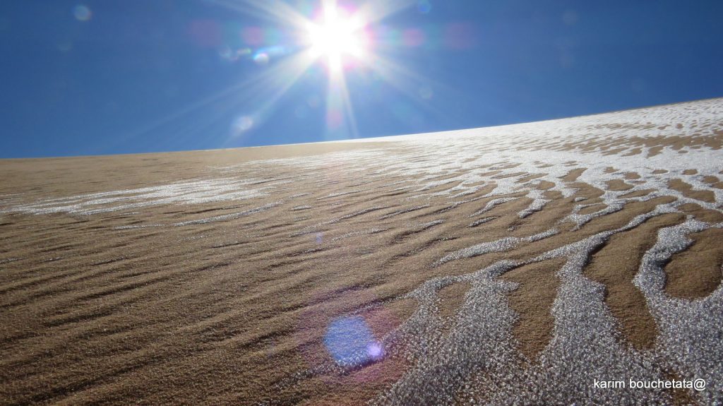 Hó és jég borította a Szahara dűnéit az algériai Aïn Séfra közelében, amiről nyugodtan mondhatjuk, hogy merőben szokatlan, sőt, kifejezetten szürreális látvány, tekintve, hogy a forró sivatag a Föld egyik legmostohább éghajlatú területe – az elmúlt kicsivel több mint négy évtizedben mindössze háromszor, 1979-ben, 2017-ban és 2018-ban jegyezhettek fel ilyet arrafelé.