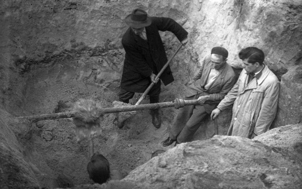 Eleinte ásóval, kéziszerszámokkal kutattak, vésővel verték fel a kőpadlót.