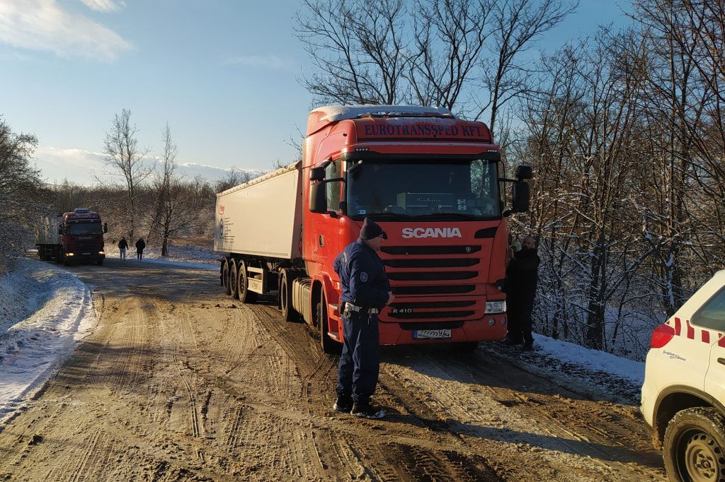 És mutatom, mi volt még a kamionok mellett a ma reggeli iskolába menés mindössze 25 kilométeres, máskor húszperces, ma csaknem egy órán át tartó útján, Fejér megye északnyugati részének csodaszép, behavazott tájain: