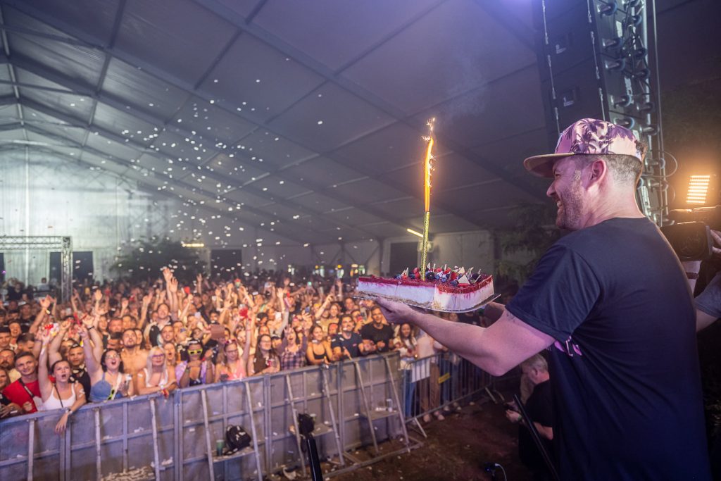 A tömeg folyamatos "Aoki, Aoki" skandálására kénytelen volt Fluor Tomi bevágni a közönségbe egy taxival expressz beszállított Auchan tortát, mire valaki csalódottságában cafatokra tépte a jegyét és a levegőbe dobta, mert k*rvára nem erről volt szó.