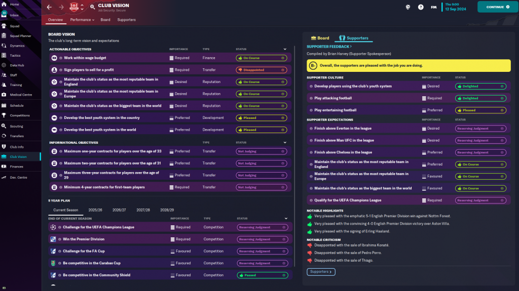Idei újdonság, hogy a Supporter Confidence menüben külön figyelmet fordíthatunk a klub szurkolóinak.