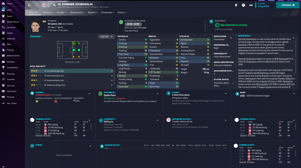 Aki már megfizette a tanulóleckét, és durrbelebalázs módon szinte egyből élvezni tudja a játék okozta mélységeket. Amennyiben pedig szűz kéz nyúl a játékhoz, nos, kicsit olyan, mintha egy irtó komplex, nagyon tematikus társasjátékot tanulnánk felnőtt fejjel. Mindenképp szükséges egy jó adag kíváncsiság, elhivatottság, türelem, tanulásvágy és futball iránti szerelem, na és rengeteg idő. Az ember szinte csak pislogott kettőt, és úgy eltelt az életéből egy óra, hogy jóformán alig haladt a játékban. Engem újfent szíven ütött az, hogy a Liverpoollal kezdett próbaszezonom felénél már tizenkét órát mutatott a steames számláló. Sok időt el lehet verni apróságok bogarászásával, ami egyszerre gyönyörkeltő és veszélyes – persze az ember közben tud podcastokat, vlogokat, könnyebb filmeket tekerni, de akkor is: