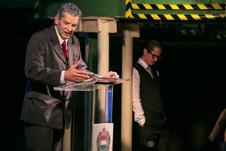 Novák Tamás, író és rendező úgy döntött, hogy ezt a nem túl egyszerű alapanyagot egy darabbá gyúrja, a végeredményt pedig Operaház katakombaszerű nézőtéri trapézpincéjében mutatja be október 23. és november 4. között minden nap. Ez a pop up jelleg, a késői, tizenegyes kezdés, plusz a 20. századi magyar történelem egyik legszürreálisabb pillanatát megidéző darab egészen különleges és egyedi élményt generál.