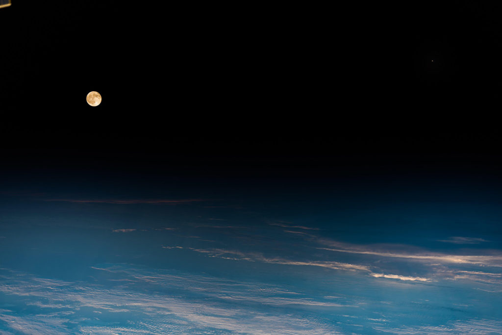 Alexander Gerst asztronauta abban a szerencsés helyzetben van/volt, hogy az űrből, egészen pontosan a Nemzetközi Űrállomásról nézhet rá a Földre és a Holdra is, így ő tud ilyen képet lőni – amiről egyébként csak tudunk mondani, minthogy G.Y.Ö.N.Y.Ö.R.Ű.