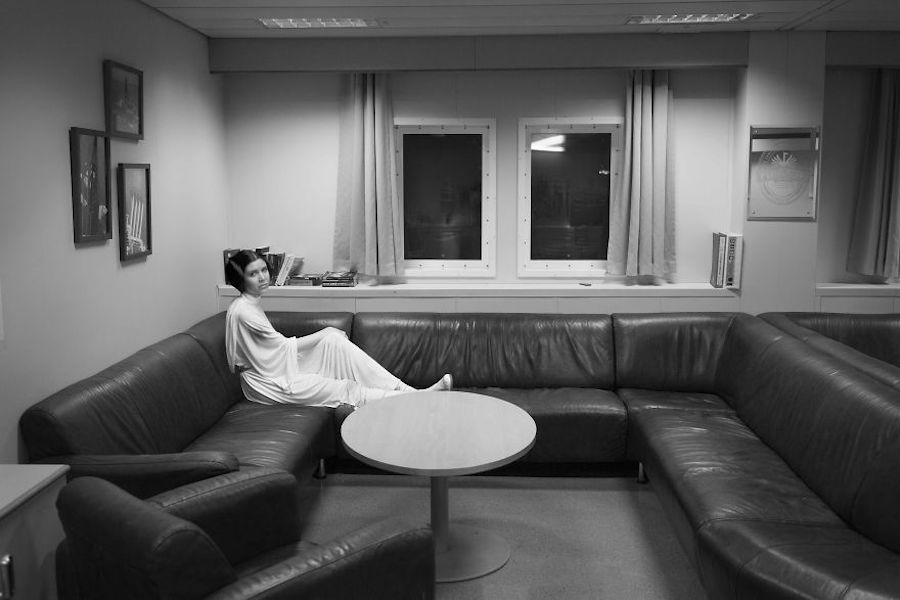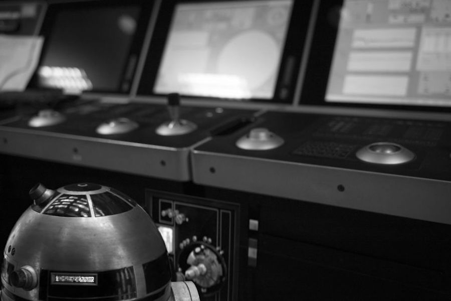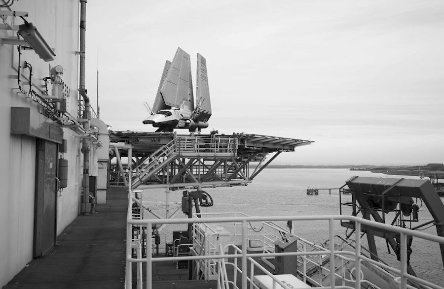 Leia a kantinban, X-szárnyúak a platformon, R2-D2 a vezérlőben, Chewbacca hegeszt.