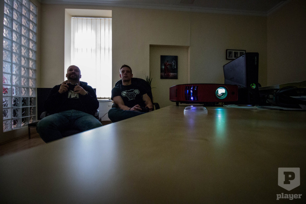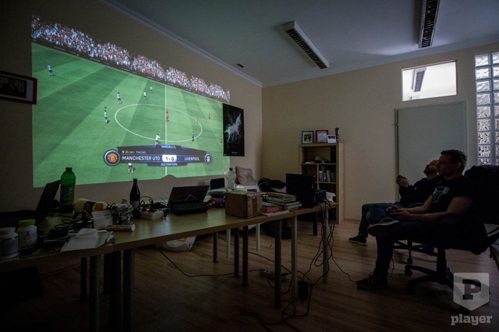 Nyilván már akkor is élvezhető lett volna, ha csak az irodai 127 centis full HD-tévét kötjük össze az XBOX-szal és úgy küldjük meg a FIFA-t, de itt volt ez a brutál nagy falfelület, meg ugye a kifejezetten játékra tervezett Acer Predator Z650 projektor, így kézenfekvő volt ez a választál, sokkal menőbb nagyban headshotolni. Na meg nem olyannak neveltek minket, hogy hagyjuk az ilyen dolgokat elmenni mellettünk.