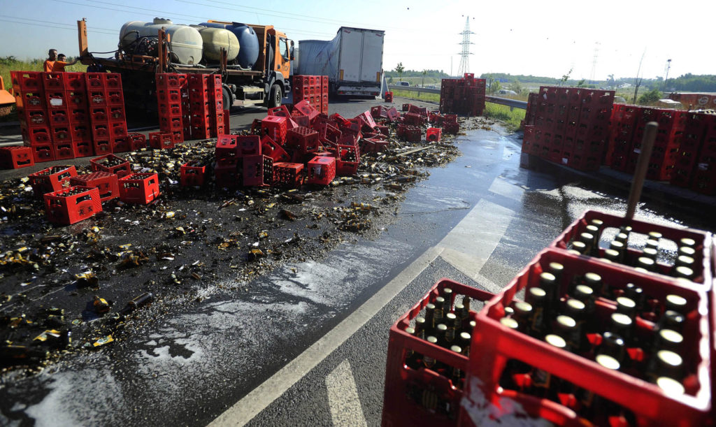 És most pontosan ez történt az M0-son, felborult egy sört szállító tehergépkocsi, temérdek üveges sörrel. :( Egyért is kár, nemhogy egy fél rakományért. A következő képeket csak erős idegzetű sörszeretőknek ajánljuk: