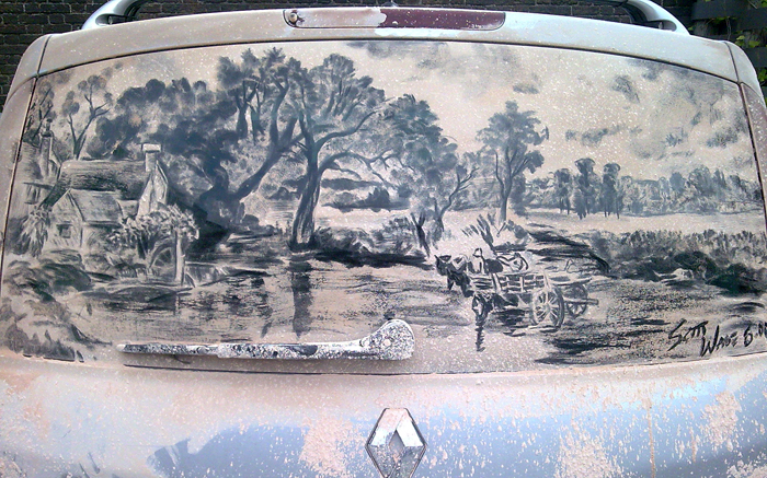 A jelenség nem egyedülálló, pálcika emberek szinte minden mélygarázsban pihenő autóra kerülnek. Azonban van, aki saját stílust épített a koszos karosszériákra. Scott Wade, amerikai művész piszok poros út mellett élve kapott ihletet ahhoz, hogy az autókra ragadt porból alkosson képeket. Szinte minden létező tévécsatorna megpörgette már történetét, és a képek alapján teljesen rászolgált a hírnévre.