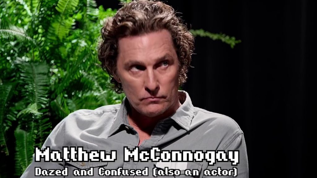 A kamuinterjúkban tulajdonképpen senki sem természetes valójában volt jelen, eljátszották a bunkóságot, a sértődöttséget, a magas lóról beszélést, igazából mindenki a saját paródiájaként ült be a két páfrány közé. Hogy ebből hogyan lehet egy egész estés filmet összehozni? Kiderült, hogy simán.
