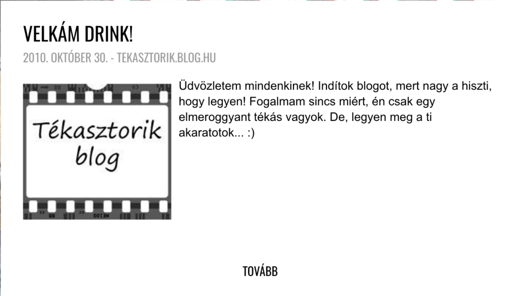 Unatkoztam a tékában, írni kezdtem, aztán a blog túlnőtte kicsiny gazdáját. Először a tékás tagok olvasták a posztokat, meg a haverok, ők mondták, hogy írjak, utána pedig a szélesebb kör, az idegen olvasók. Túlzottan noszogatni nem kellett, a baromság csőstűl jött belőlem.