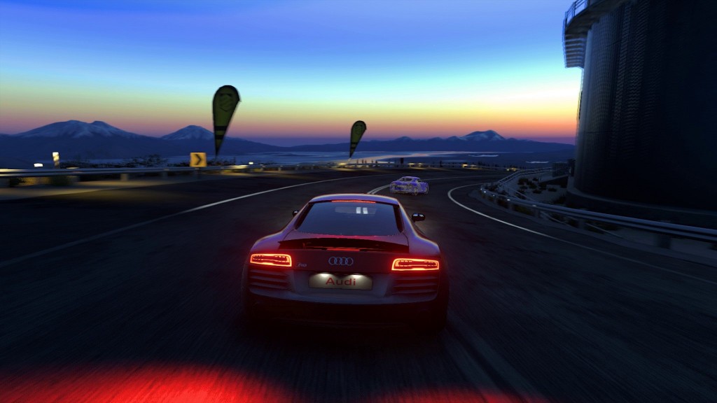 A játék külsőségeiben abszolút nextgen. Ilyen füsteffektet például még nem is nagyon láttunk, de a fény-árnyék megvalósítása, a dübörgő motorhangok vagy a kisodródás esetén tapasztalható részecskeeffekt is teljesen rendben vannak. A nagyon beharangozott (és az előzetes gameplay videókon bombasztikusan virító) dinamikus időjárás-változást viszont sajnos nem volt lehetőségünk szemmel bevizsgálni, mivel ezt a fénykép-móddal karöltve csak a hivatalos megjelenést követő napokban fogják belepeccselni a játékba. Az egyszeri gémernek egyébként is van egy olyan érzése, hogy még nagyon sok minden vár ránk Driveclub-fronton. (Szándékosan nem azt írtam, hogy félkész a játék, hiszen egy minden szegmensében olajozottan működő alkotásról van szó.)