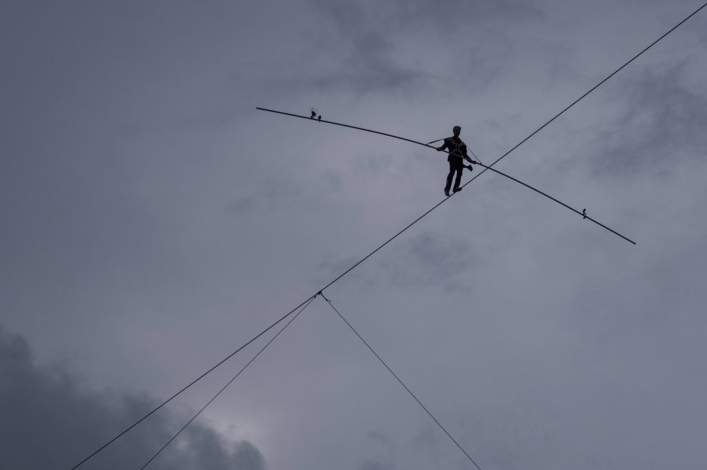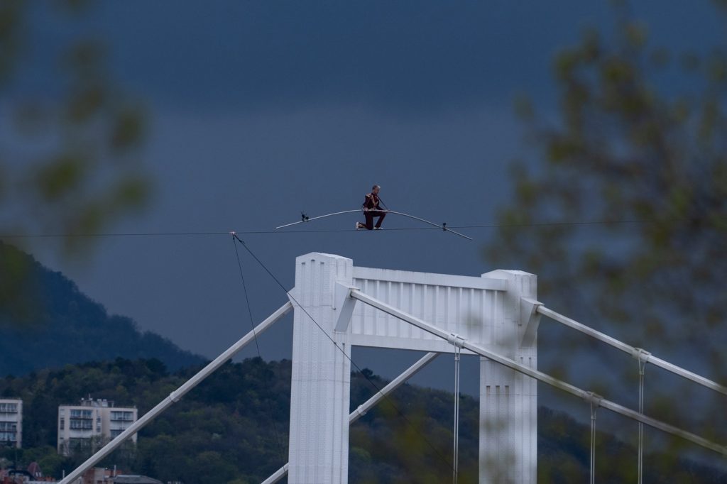 40 méter magasban kifeszített drótkötélen sétált át egy férfi Budáról Pestre