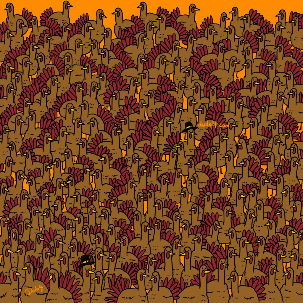 Dudás Gergely, azaz Dudolf munkáit imádjuk, de most minden eddiginél jobban átkozzuk a nevét, úgy kifogott rajtunk az egyik képrejtvényével, ahol három kakast kellene megtalálni a pulykák között. Nekünk nem sikerült, még az is lehet, hogy neked sem fog, de nyilván ezt úgy lehet megcáfolni, ha megpróbálod. Tehát a kérdés az, hogy