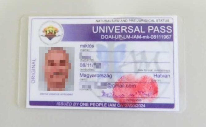 Különleges esetről számolt be a Rendészeti Államtitkárság. A rendőrök azért állítottak meg egy autót, mert nem létező állam nem létező rendszámtábla volt rajta. A vezetője a Magyarországon használt személyi igazolvánnyal nem igazolta magát, bemutatott viszont egy „Élő ember igazolványt” és egy „Universal Passt”. Sajnos a rendőrök – talán mert Magyarország hivatalos hatóságát képviselik és a magyar állam jogszabályai alapján dolgoznak – nem fogadták el egyiket se.