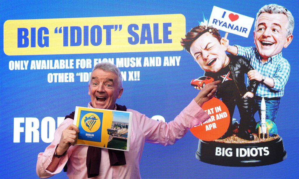 A Ryanair vezére szerint az antennák felszerelése olyan mértékben rontaná a gépek légellenállását, hogy az évente nagyjából 250 millió dollárral dobná meg az üzemanyagköltséget. „A Ryanair vezérigazgatója egy totális idióta. Rúgják ki!” – reagált Musk az X-en, hozva a tőle megszokott stílust. Aztán indult az adok-kapok, Musk szerint O’Leary nem ért a fizikához és nem tud számolni, O’Leary szerint pedig Musk semmit nem tud a repülésről.