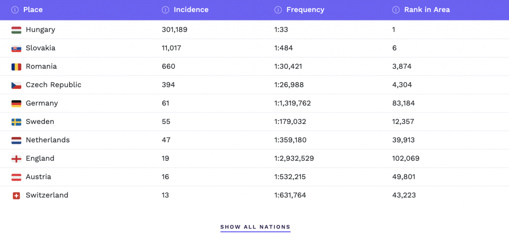 Alatta pedig országok szerinti számszerű bontást találod: