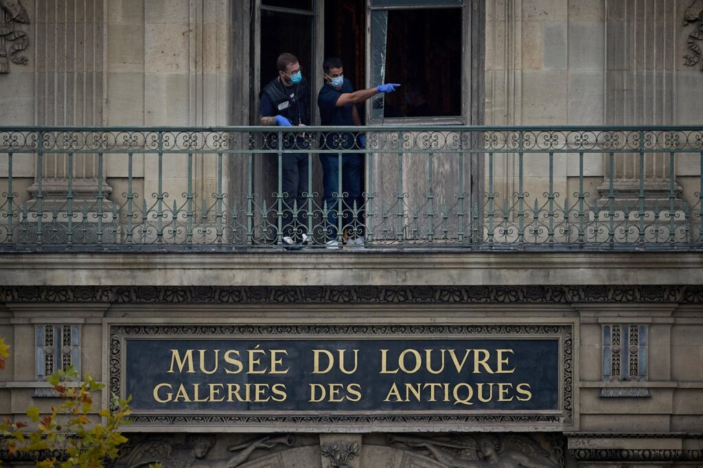 Azt gondolnánk, a világ egyik leghíresebb múzeumát csak nagyon kifinomult módszerrel lehet kirabolni. Vasárnap reggel négy kapucnis-maszkos bűnöző cáfolta ezt: két nagyrobogóval odahajtottak a helyszínre, egy létrás kocsival odaálltak a Szajna parti épület mellé – ahol építési munkák zajlanak –, ketten felmentek a létrán az első emeleti teraszra, betörték az ablakokat, bejutottak a múzeumba, majd a vitrineket összetörve elvittek kilenc darabot Napóleon és császárné ékszergyűjteményéből.