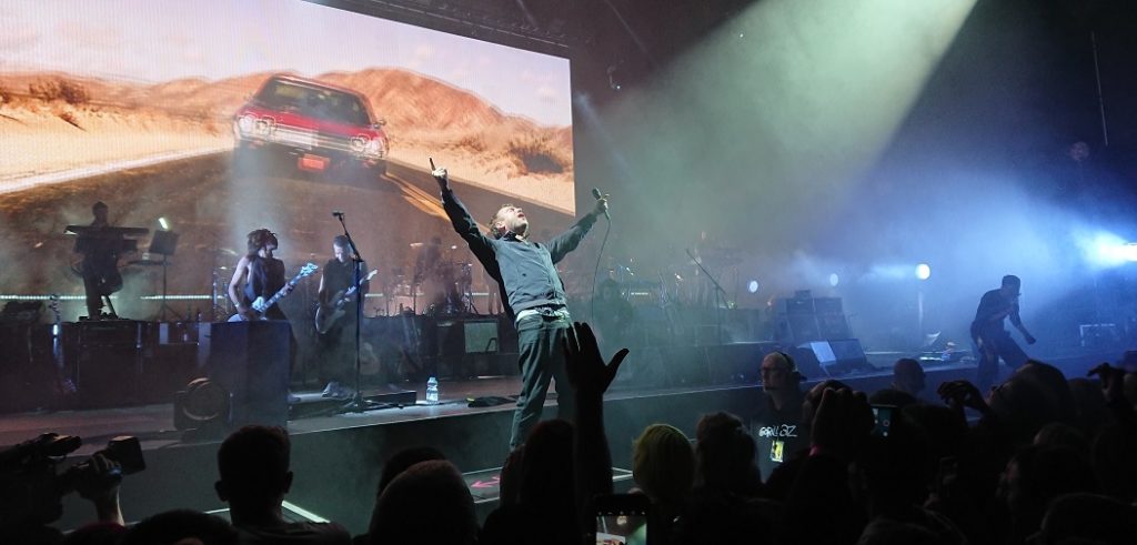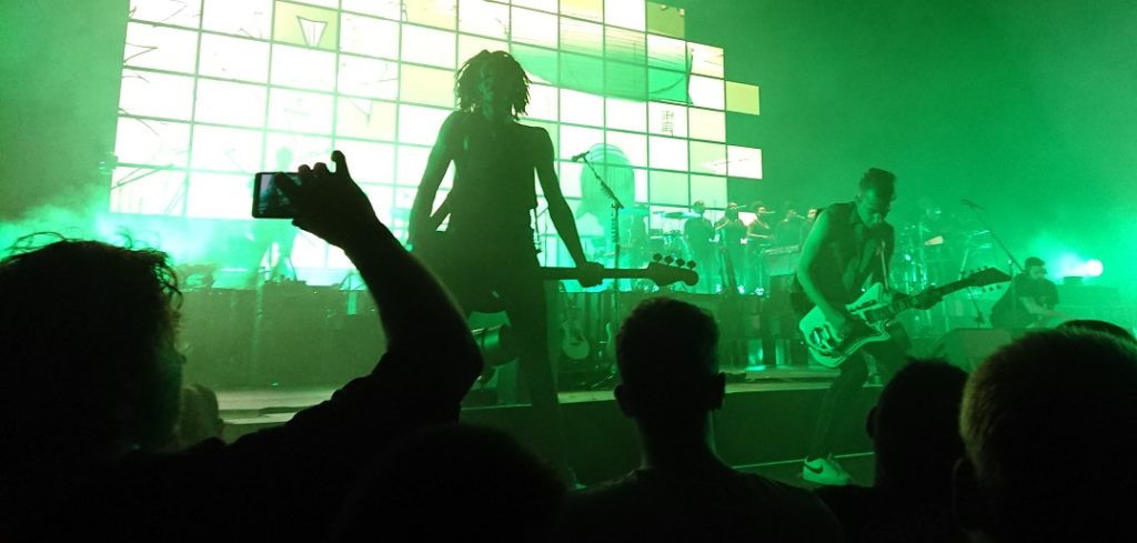 Lejön a közönségbe énekelni, de mikor másodszor is megpróbálja, gerjedni kezd a mikrofonja, és inkább visszamegy duzzogva, bosszankodva, mert ő tényleg oda akart menni az emberekhez. Közben a zenekar végig kvázi az életéért játszik, többször olyan löketet adva a daloknak, hogy jobban szólnak, mint lemezen, és isten bizony nagyon kellene a turné után egy jól felvett live album, mert bizony sokszor még a Humanz prüntyiorgiája is sokkal jobban működik élőben, élő hangszerekkel megtámogatva.