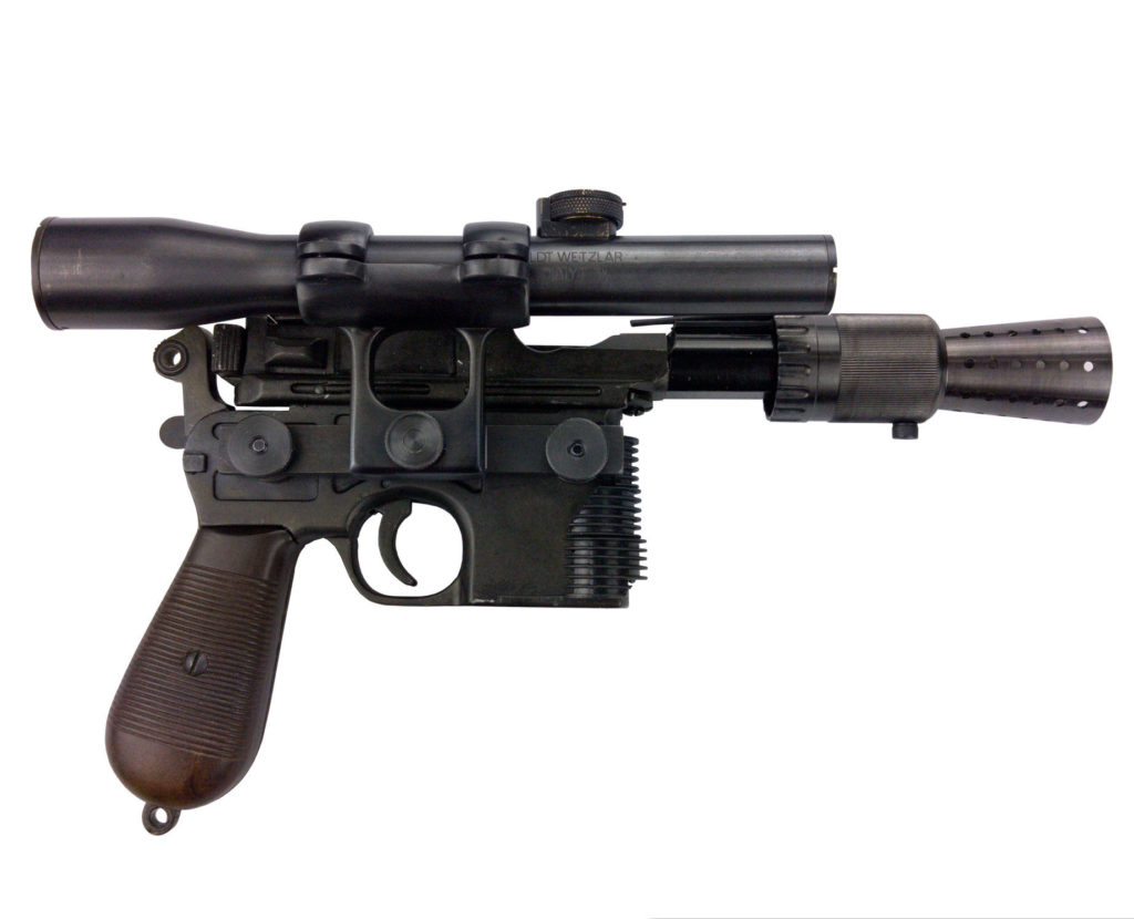 Han Solo DL-44 típusú sugárpisztolya eredetileg a német Mauser C96 mintájára készült, és azt a példányt, mellyel Harrison Ford a forgatáson puffogtatott, 2013-ban árverezték el.