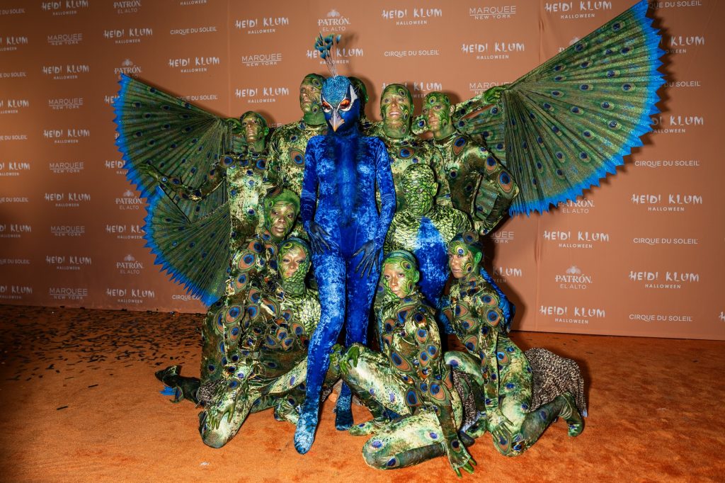 Idén szerencsére ennyire nem akart visszataszító lenni, de megúszósra sem vette a figurát. Pávának öltözött, de nem is akárhogy: a teljes jelmezéhez magával együtt összesen tizenegy emberre volt szükség. Íme a teljes szett: