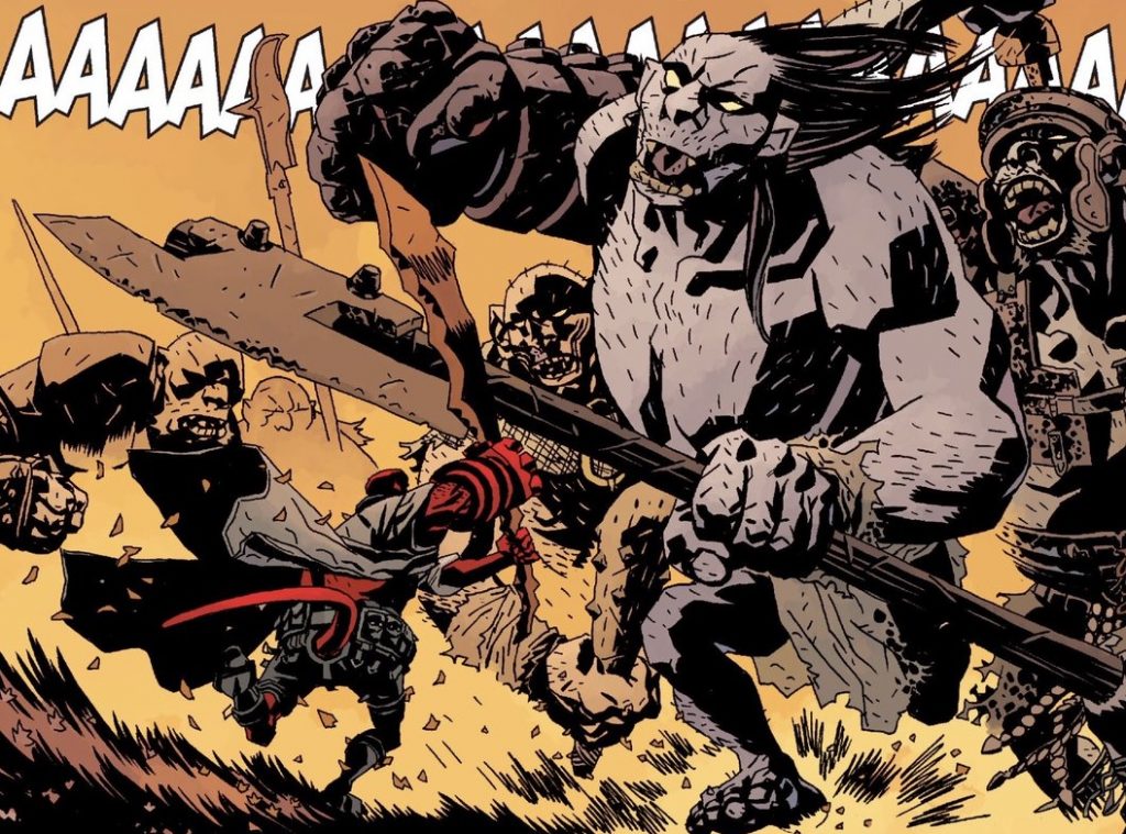 Nyugi, spoilermentesek leszünk. A nagy vadászat alapját az adja, hogy Hellboyt meghívják Nagy-Britanniába egy óriásvadászatra, amire azért van szükség, mert egyrész baromi jól néz ki lerajzolva és a nagyvásznon is, plusz a történet szerint a Brit szigeteken az óriások ébredezni kezdenek, és valakinek tennie kell valamit. Aztán a dolgok másképp alakulnak, és megjelenik Nimue, a Vérkirálynő, aki persze nem azért tért vissza, hogy megkóstolja a brit konyha újdonságait, hanem azért, hogy leigázza a vidéket. Hellboynak viszont más gondja is akad a saját múltjával, nem is kicsi, és ha valamiért, hát ezért választották ezt a történetet az új film alapjául.