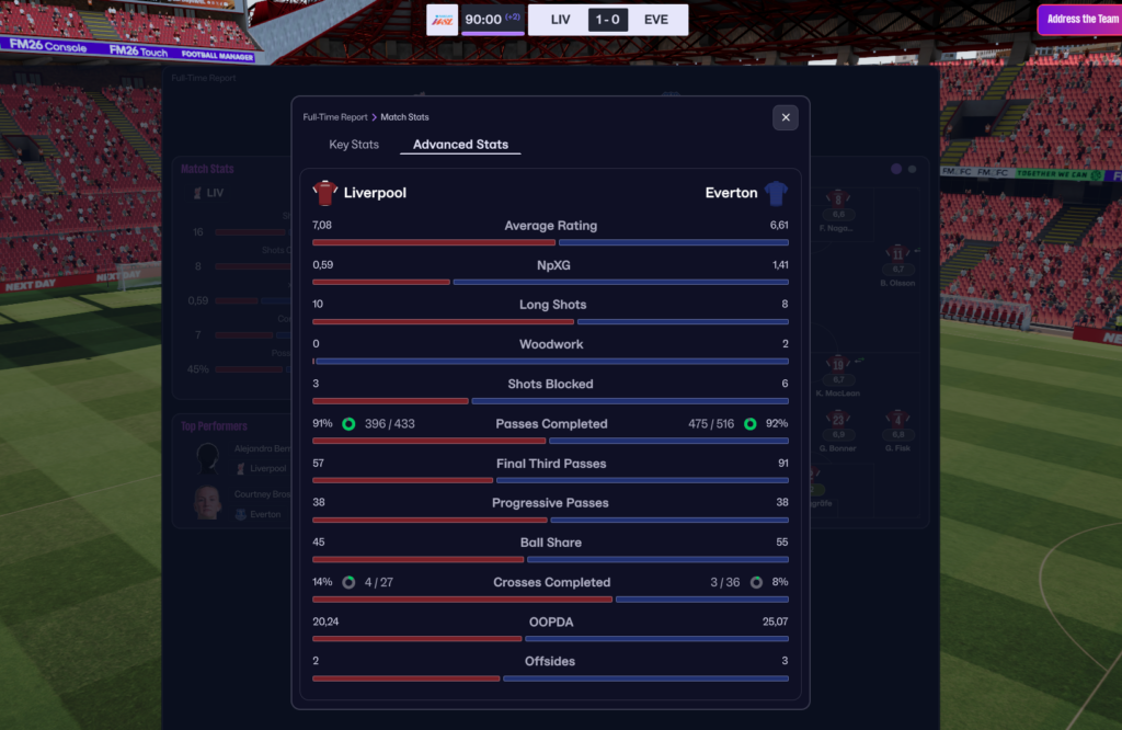 Ugye a tavalyi játékot azért halasztották, mert a csapat nagyobb technikai ugrásra készült, hogy látványosabb és részletesebb meccseket kínáljanak. A Football Manager 26 már az Unity motoron fut, ami sokkal részletesebb, élethűbb mérkőzéseket és látványosabb animációkat eredményez. És tényleg! A játék jobb animációkat, változatosabb játékhelyzeteket, futballszagúbb megoldásokat tartogat nekünk, amennyiben a 3D-ben követjük az eseményeket.