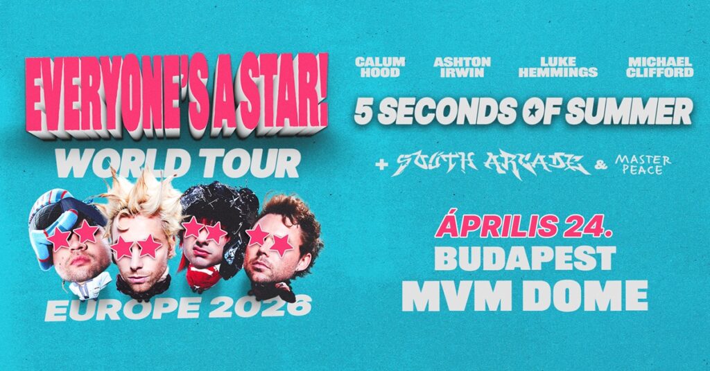 A 5 Seconds of Summer tagjai szólókalandjaik után most ismét egyesített erőkkel vág neki a koncertezésnek. Hamarosan érkező Everyone’s a Star! című lemezükkel tavasszal európai turnéra indultak és Budapestre is visszatérnek új dalaikkal. Az ausztrál szupersztár popcsapat az elmúlt évek során milliók szívét hódította meg, és számos rekordot döntött meg. A zenekar eddig több mint 17 milliárd globális lejátszást ért el, valamint három no.1 albumot tudhat magáénak az amerikai Billboard 200-as listán – ezzel ők az eddigi legsikeresebb ausztrál előadók. Jegyekért ide kattints!