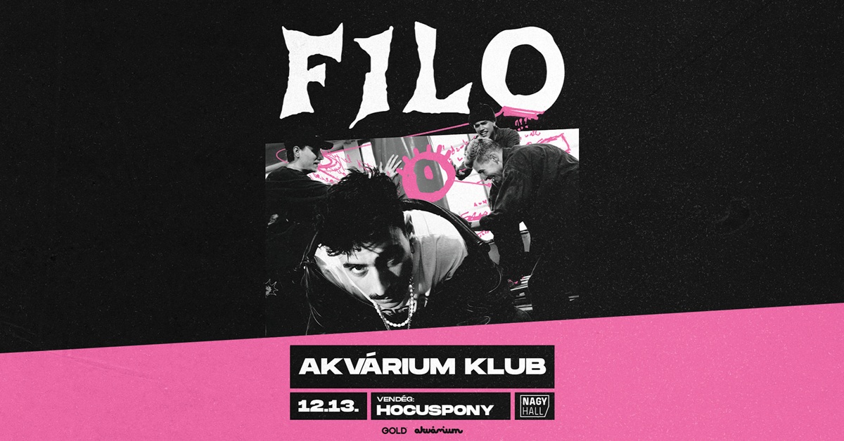 A tavalyi teltházas KisHall után FILO és zenekara december 13-án visszatér az Akváriumba, ezúttal a NagyHall színpadára! Az eddigi legnagyobb koncertjükre extra látvánnyal, vendégekkel és egy új kislemezzel készülnek. A zenekarban Fuchs Benjámin mellett Juhász Tamás (dob), Latyák Bence (billentyű) és Geröly Tamás – Tendency (gitár) lépnek majd a színpadra. Jegyekért ide kattints!